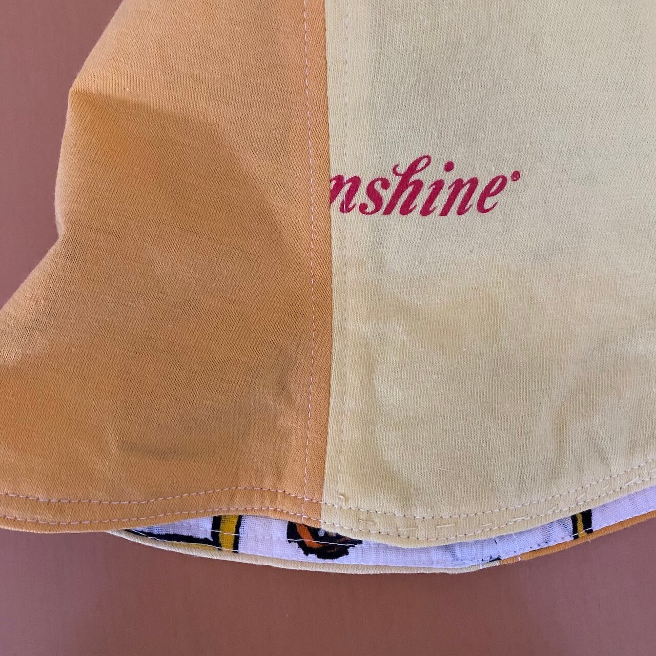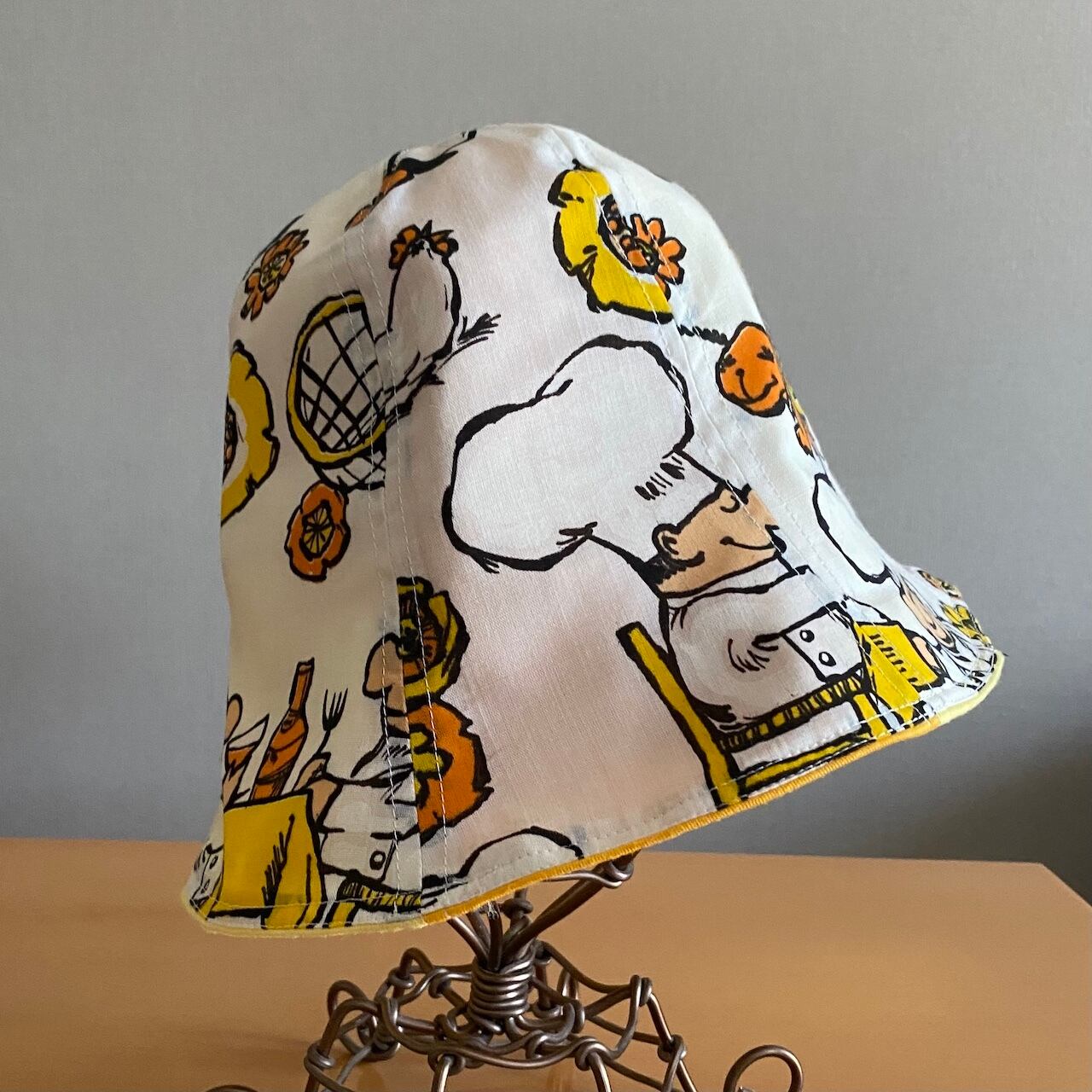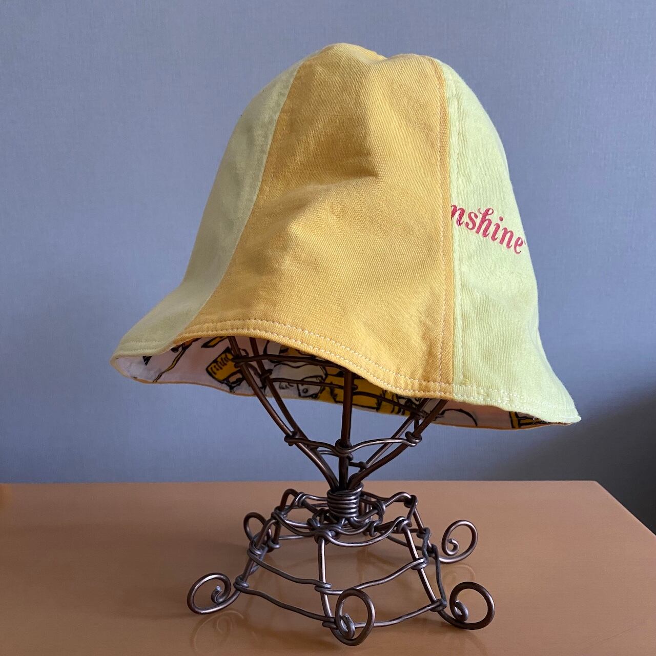 ビンテージTシャツ生地をつかったチューリップハットです。