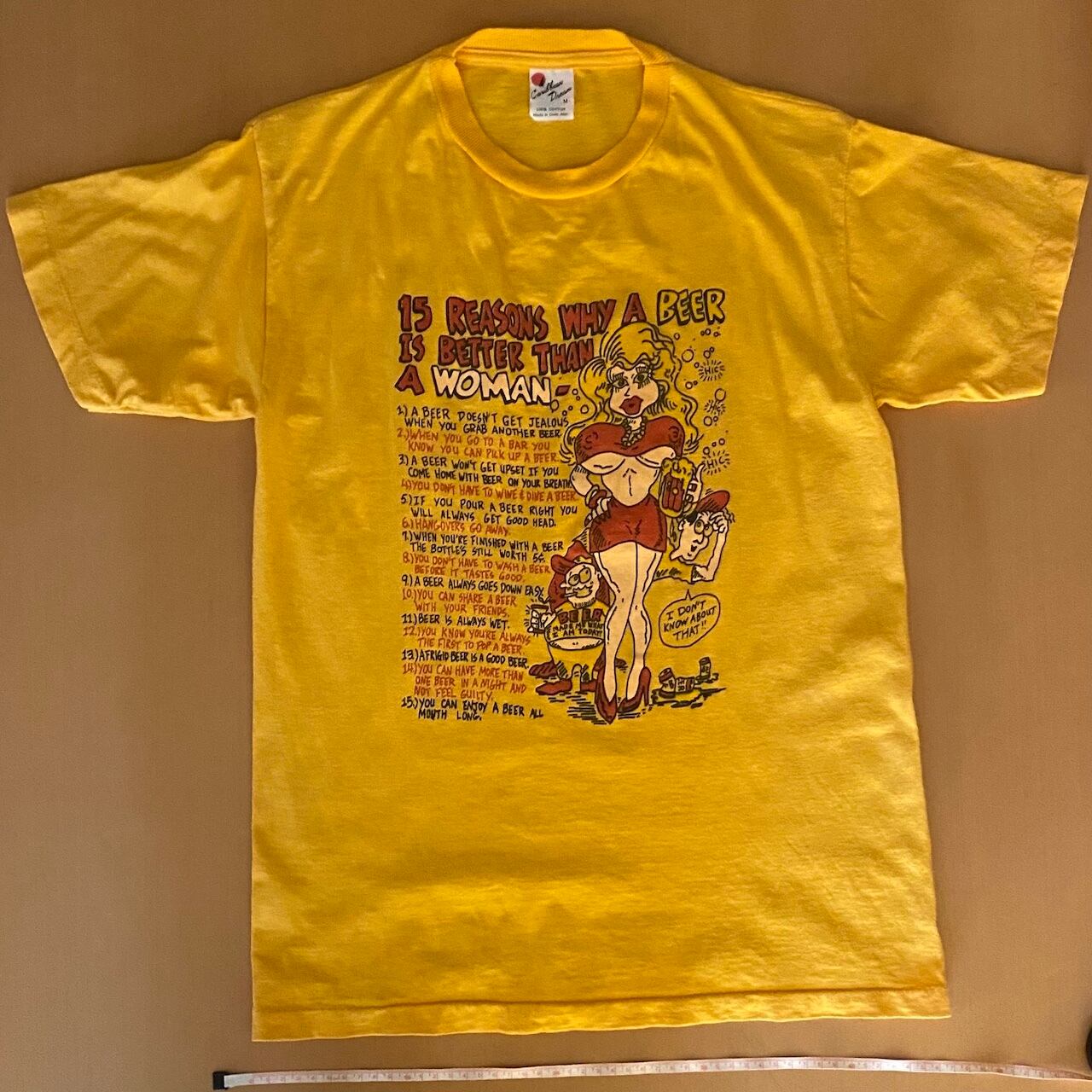 ビールが女性よりも優れている15の理由が述べられているセクシーTシャツです。ビールを愛する方に堂々と着ていだたきたいですね。ユーモアの効いたグラフィックと文言が楽しいです。